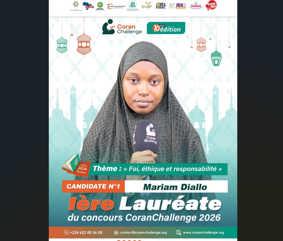 La 10e édition du Coran Challenge, portée avec panache par le groupe Guinée Buzz, a célébré une décennie de rayonnement spirituel dans une atmosphère de ferveur et de grâce absolue. Cette finale anniversaire a consacré le triomphe de la lycéenne Mariama Diallo, dont l’excellence oratoire l’a hissée au sommet d’un quinté de lauréats méritants.