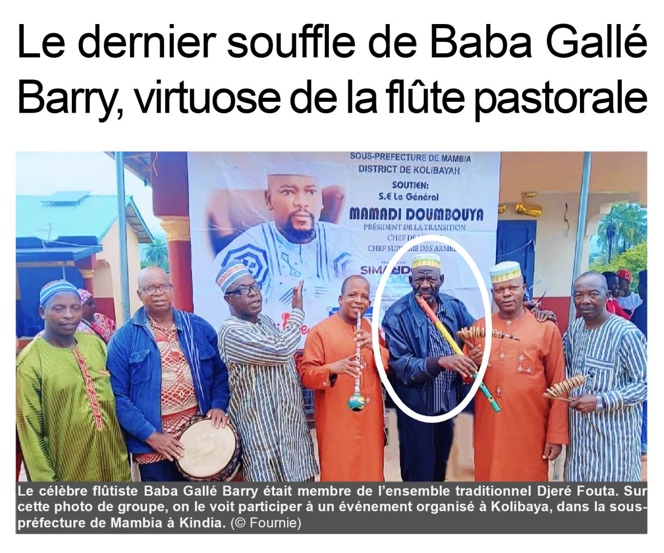 La musique guinéenne est en deuil. Le célèbre flûtiste Baba Gallé Barry, figure de proue de l’ensemble traditionnel Djeré Fouta, a tiré sa révérence le lundi 16 février 2026.